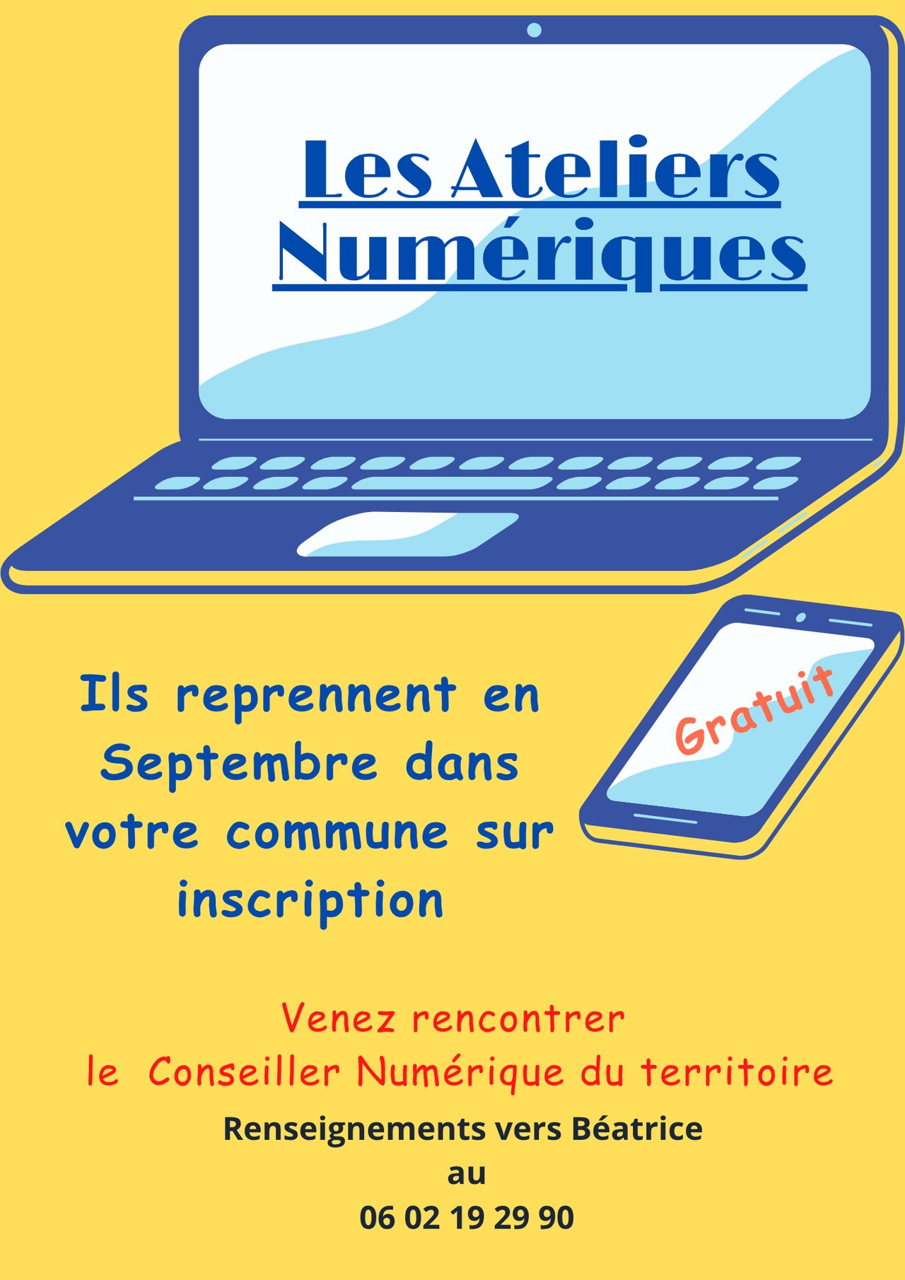 Je vous informe que les Ateliers Numériques sur le Territoire de la CCPMC reviennent en collectif à partir de septembre 2026